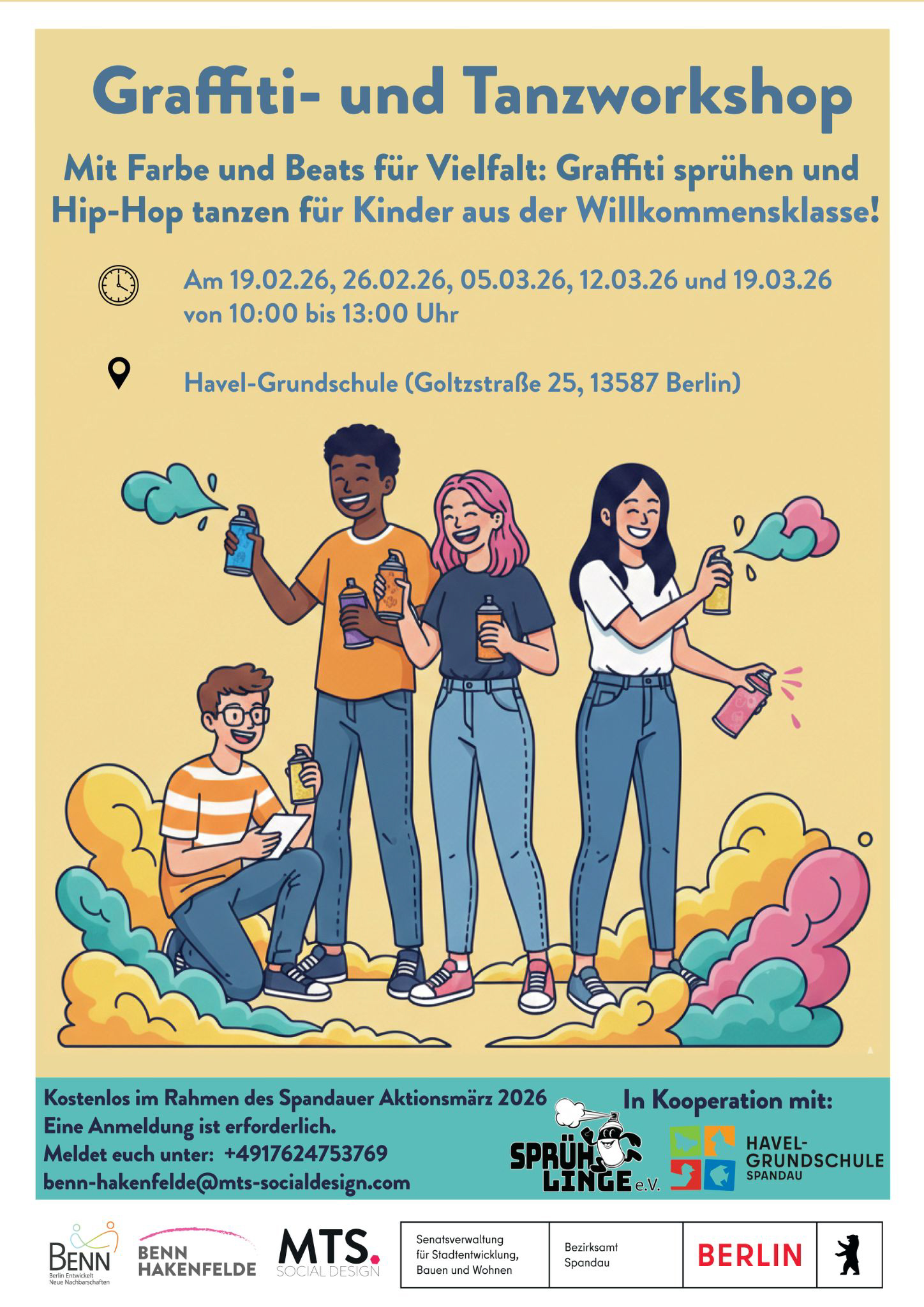 Graffiti- und Tanzworkshop für die Willkommensklasse in Kooperation mit Sprühlinge e.V. und BENN Hakenfelde im Rahmen des Aktionsmärz 2026